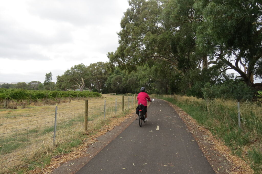 Register for news updatesThe Coast to Vines Rail Trail in South Australia now has a new side trail called the Flat to Vale Trail and while it is only 4km in length, the scenery along the trail will leave a lasting impression. The trail follows a shared use path along Pedler Creek, with tall eucalypts on one side and rambling vineyards on the other. Just prior to reaching the McLaren Flat township the trail follows Chalk Hill Road, a quiet back lane ideal for cycling and walking. The trail is sealed and flat so its suitable for cyclists of all ages.