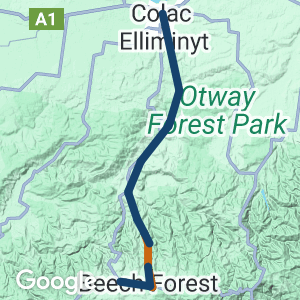 Gellibrand to Beech Forest (18 km): Climbs steadily through scenic bush and timber plantations, of which the first 9km, to Wimba, is officially open. You can detour onto the gravel Old Beech Forrest Rd to get to Beechy, but this is not recommended by the council